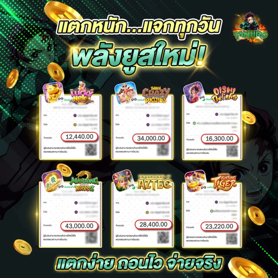 ที่ TANJIRO ยังมีโปรโมชั่นดีๆ อีกมากมาย ไม่ว่าจะเป็นโบนัสต้อนรับสมาชิกใหม่ เครดิตฟรี หรือแม้แต่การคืนยอดเสีย ซึ่งสามารถนำมาใช้ต่อยอดในการเล่นสล็อตได้อย่างคุ้มค่า อย่าลืมติดตามข่าวสารและอัพเดทโปรโมชั่นใหม่ๆ อยู่เสมอนะครับ